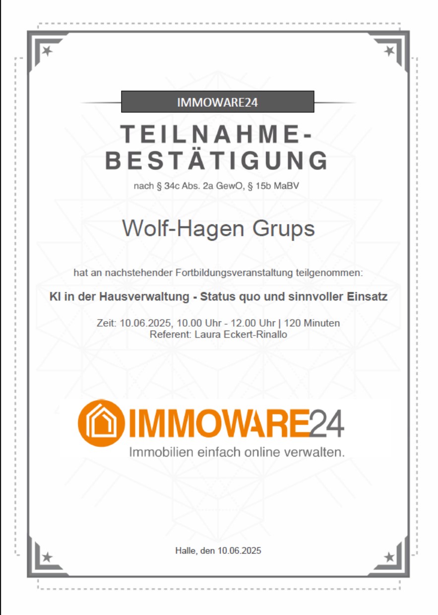 Immobilienmakler und auch Wohnimmobilienverwalter sind gesetzlich zur Weiterbildung verpflichtet! Anderenfalls droht Ihnen der Widerruf der Gewerbeerlaubnis. Dieses Gesetz gilt bereits ab dem 01.08.2018. Im Zeitraum von 3 Jahren sind derzeit 20 Stunden Fortbildung zu erbringen und nachzuweisen.